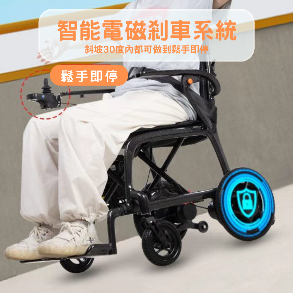 ● 煞車系統採用電磁自動煞車,斜坡停車不會溜後。