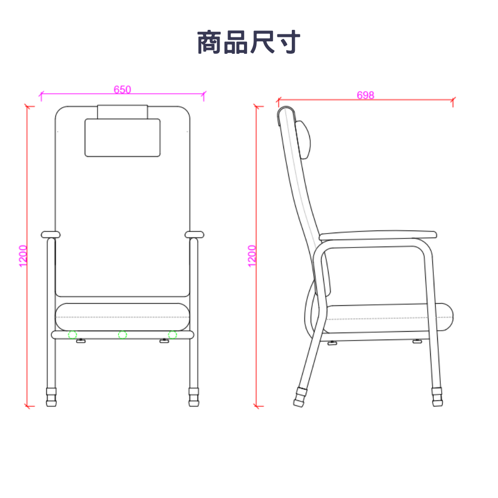 | 總尺寸 (cm) | 全寬65cm x 深70cm x 高120~129cm / 扶手長度:42cm / 扶手高度:26cm |