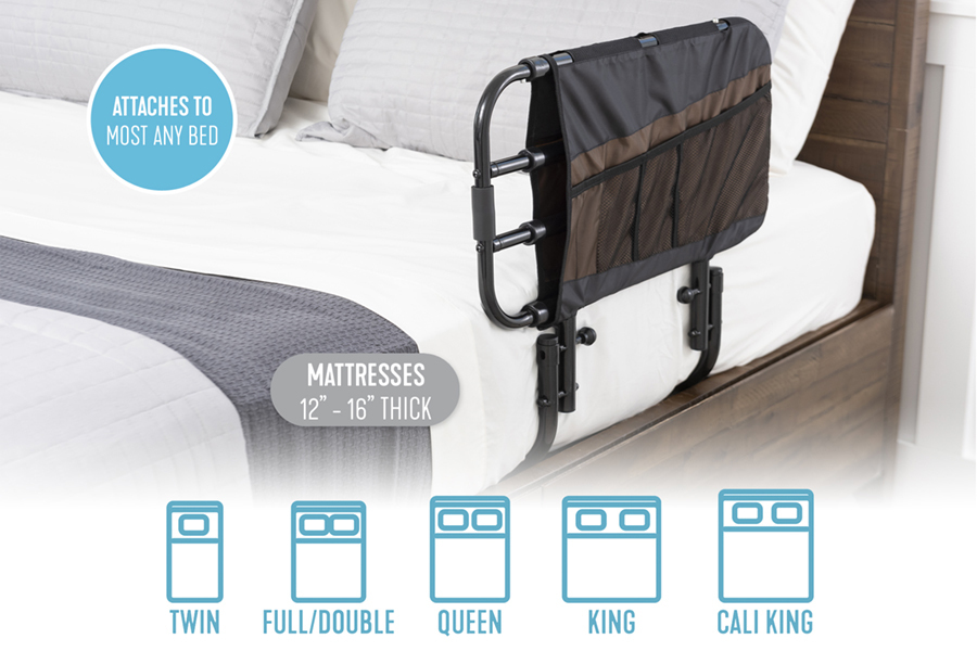 在太軟的床墊上安裝床護欄,發生受困和受傷/死亡的風險會大得多!過軟的床墊會增加人的頭部、手臂或腿部被夾在床墊和欄桿之間的風險。被夾住可能會導致受傷或死亡。