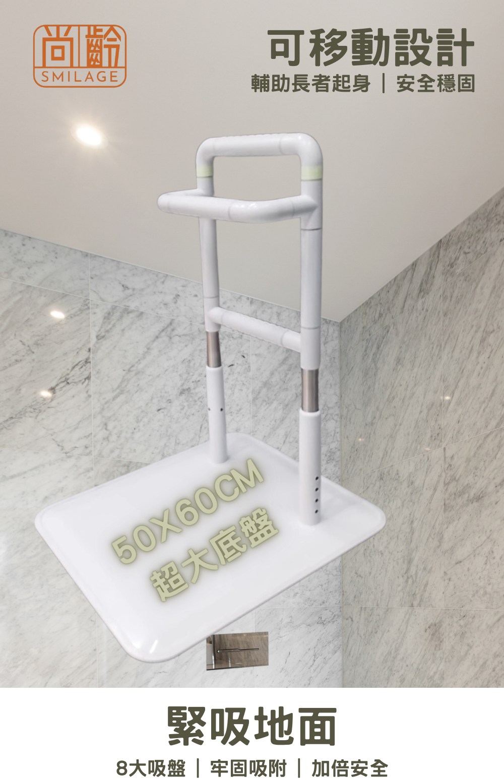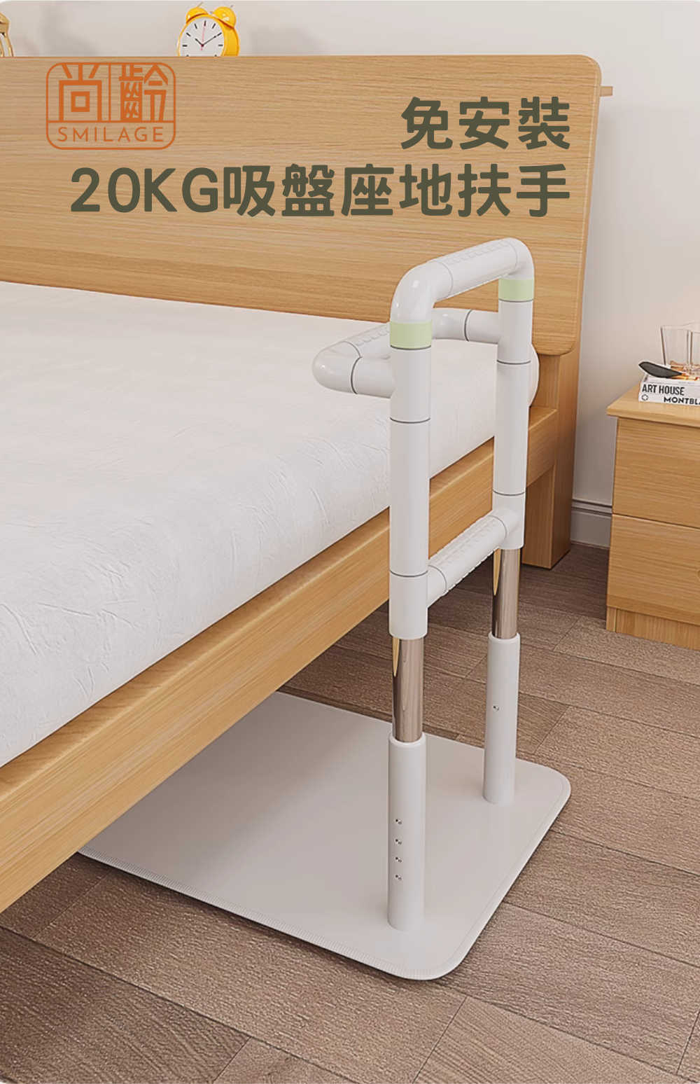 許多銀髮長輩由於身體機能退化,從床上起身或躺下時常會感到很吃力。樂齡網為您介紹一款由吸盤座地安全扶手,重達20 Kg的穩定支撐,讓家中長輩上下床有了依靠,不再需要仰賴家人的扶持,獨立自主的生活是老後尊嚴生活的基本。