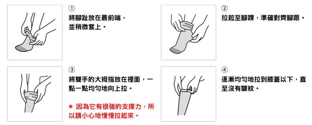 (*如兩碼都適用,請以腳踝圍為準。)穿戴方法