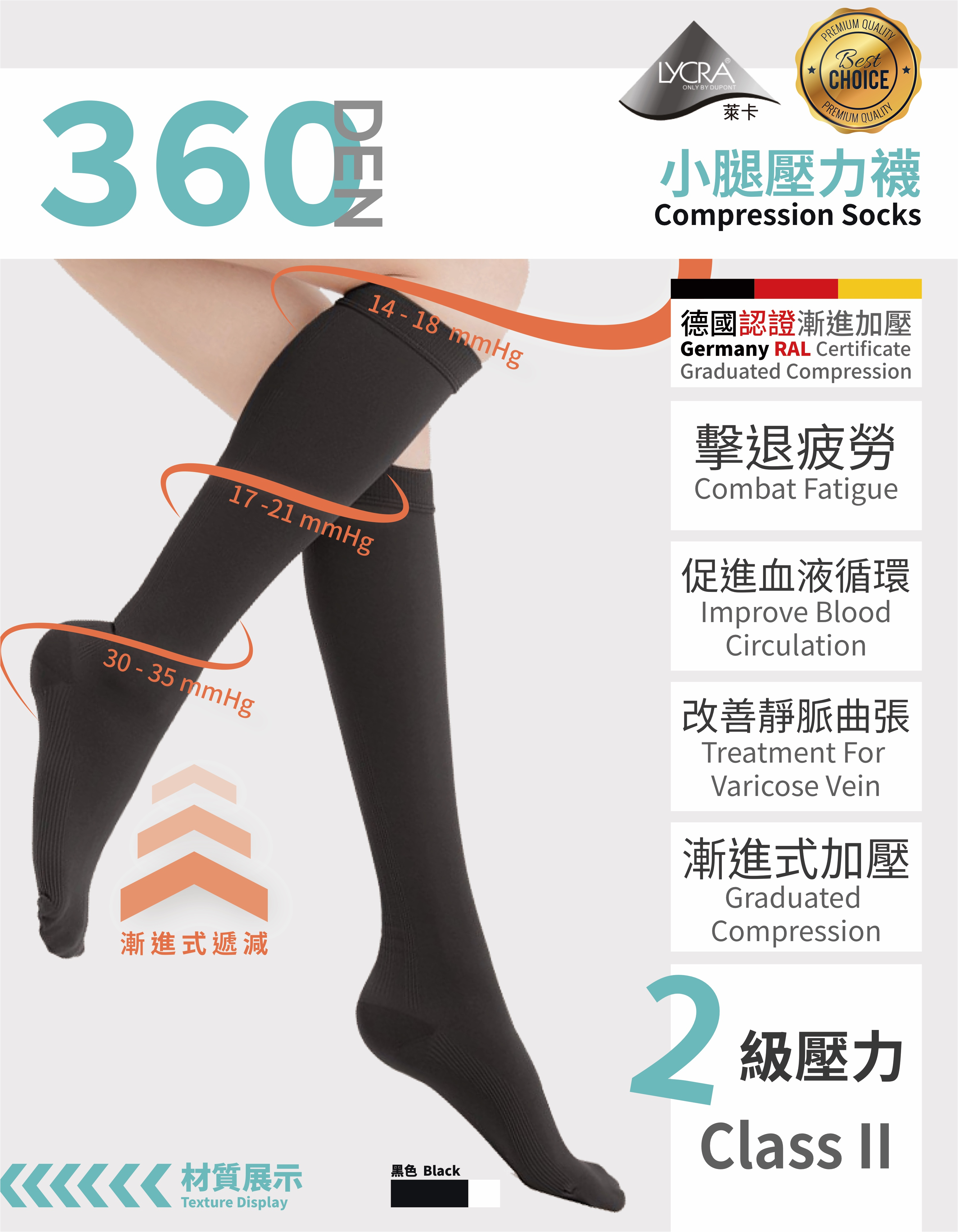 (德國漸進式壓力認證)獨特的編織技術,配合漸進式壓力科技,讓你於日常生活中享受壓力襪的功效。