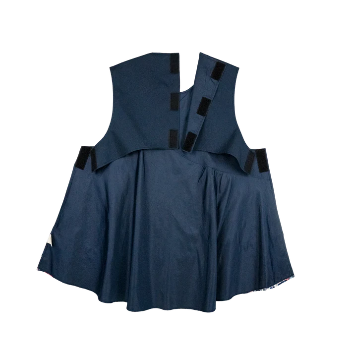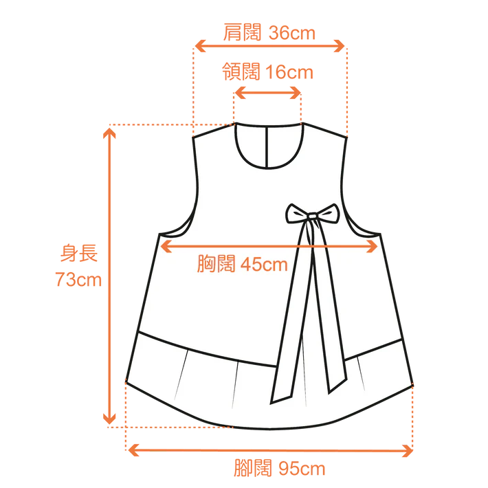 胸前蝴蝶結細節,淨色布配上花布,低調又有設計感!