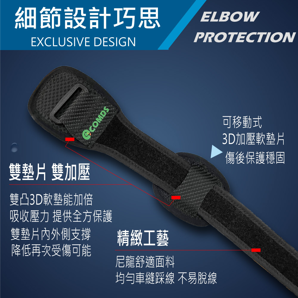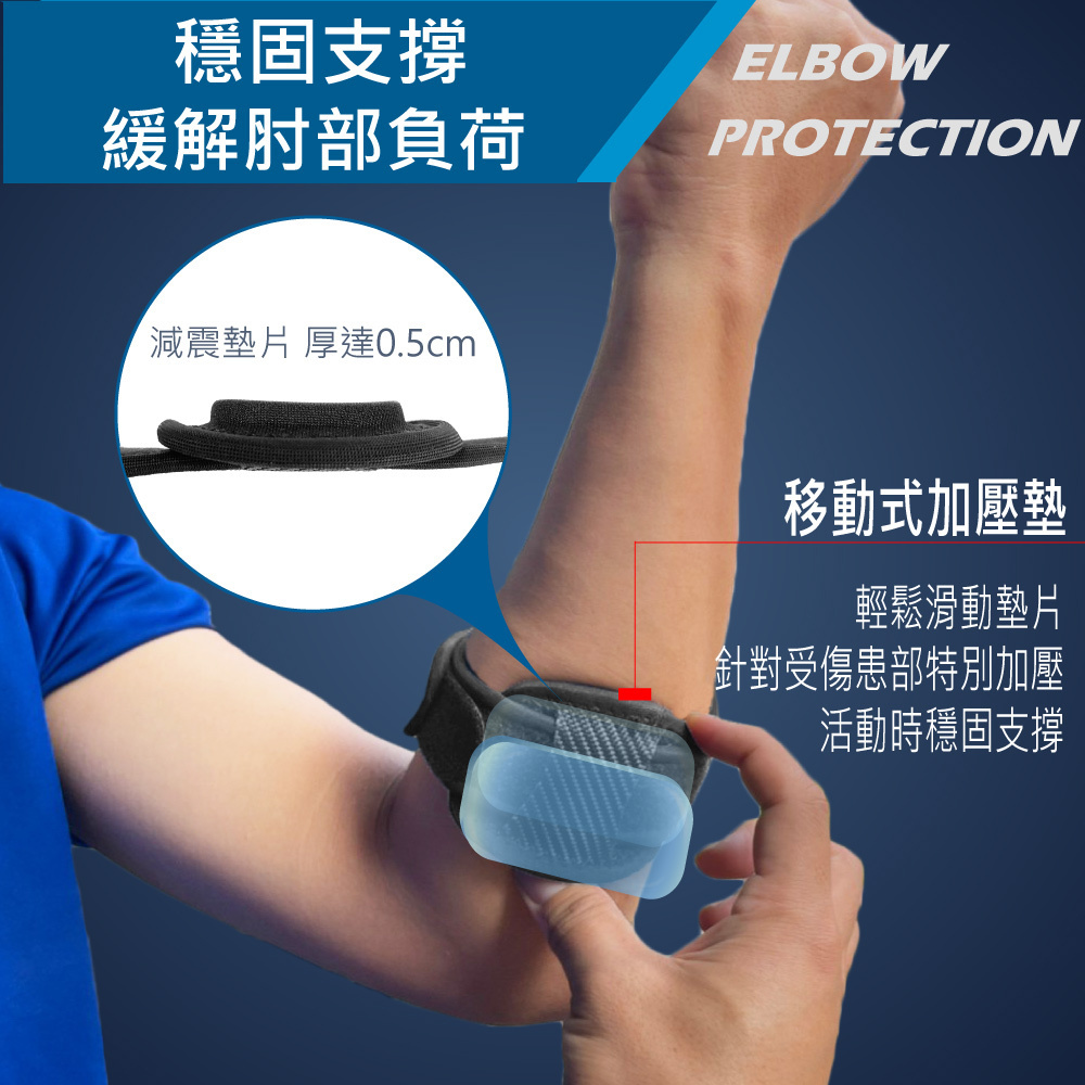 可調式雙緩衝減震墊360度包覆|提供手肘支撐保護