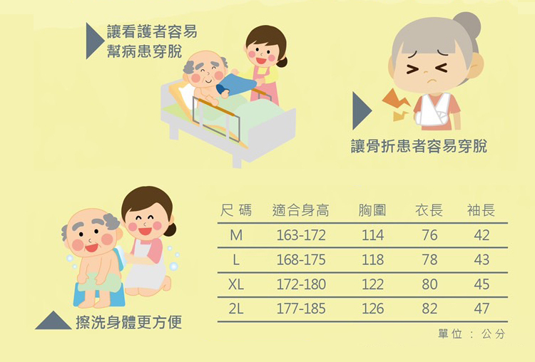 採用竹炭纖維面料,抗菌、吸濕、除臭,是穿脫衣服不便者及照護者的貼心首選。