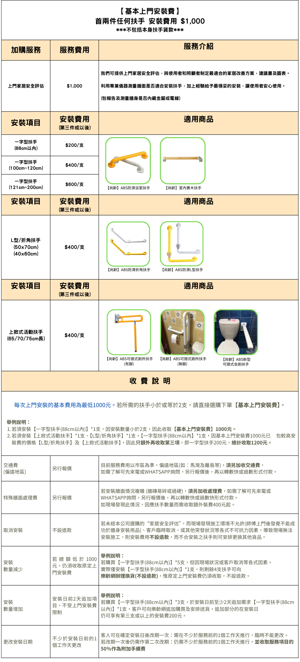 【首兩件任何扶手 安裝費用 $1,000】