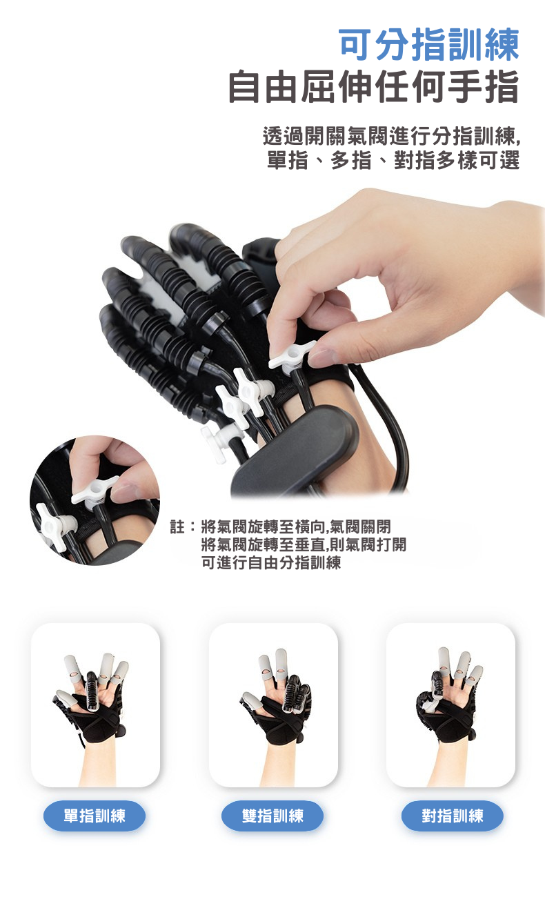 . 可分指訓練及自由屈伸任何手指