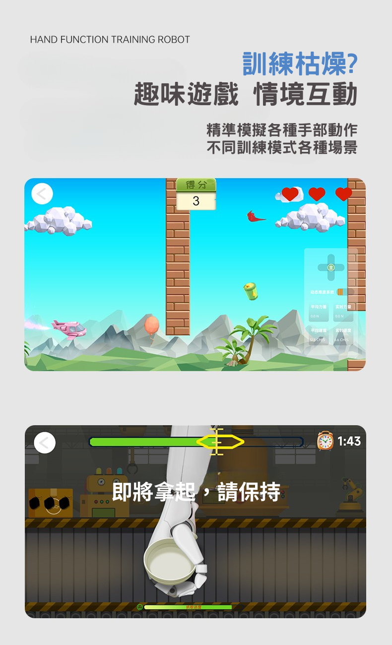 . 高度逼真的開合手訓練