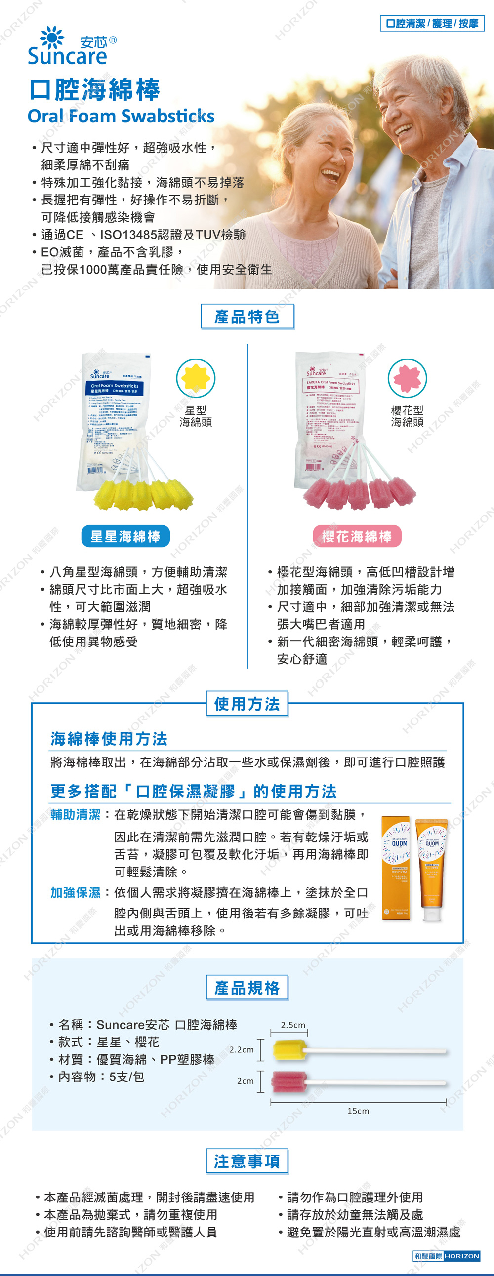 ☆ 星型棉頭,不含添加物,方便協助清潔或滋潤全口腔