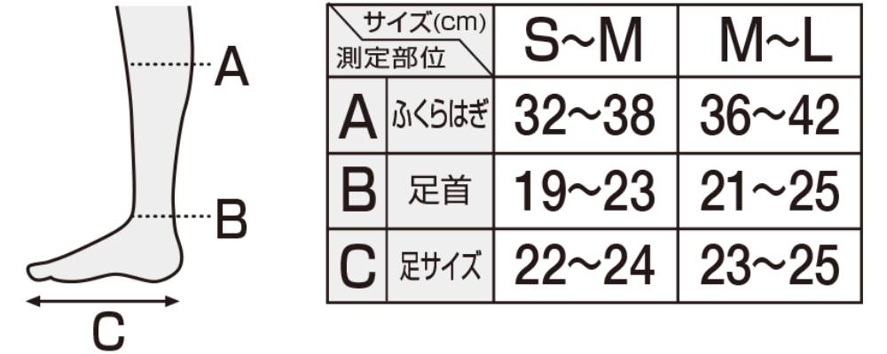 產品規格● 顏色: 黑色 (短筒,露趾)● 尺碼: S-M/M-L (*如兩碼都適用,請以 B位置 - 腳踝圓周 為準。)● 壓力值:腳踝:最大 34 (28-34) hPa / 小腿:最大 25 (19-25) hPa● 產地: 日本● 醫療級別: HK CLASS II
