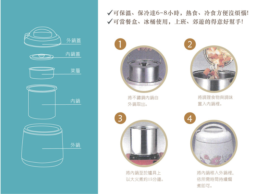 ✅ 內鍋加熱15分鐘|外鍋悶燒免插電