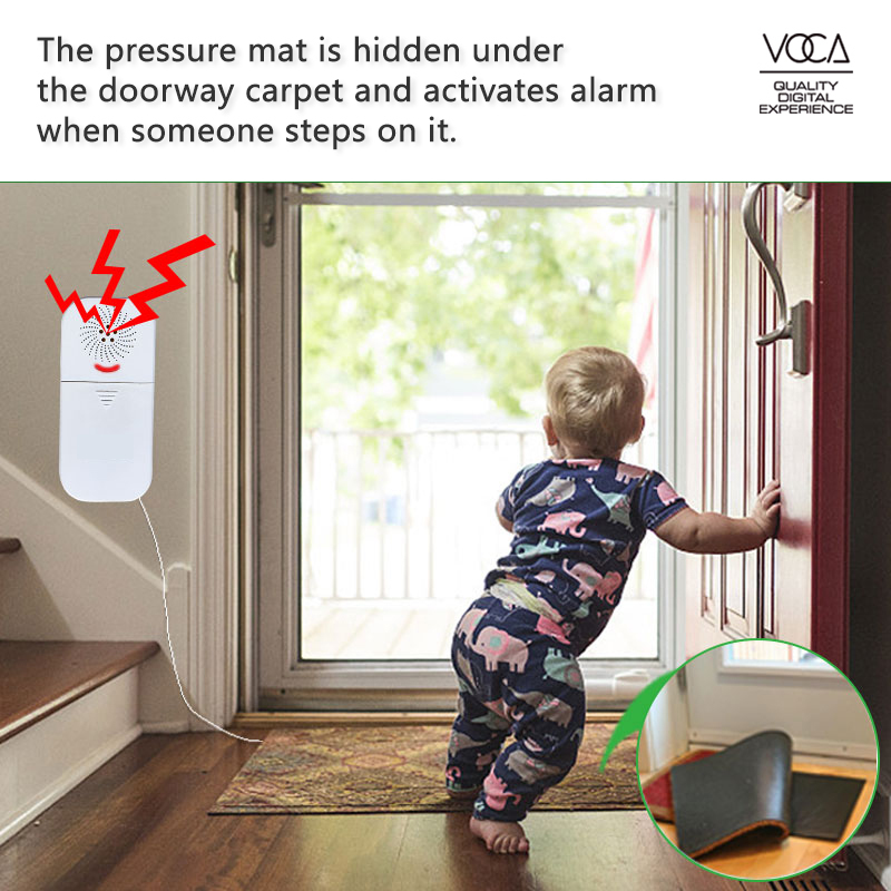 - 當踩踏在隱藏在地氈下的壓力墊上,將啟動警報和閃光燈